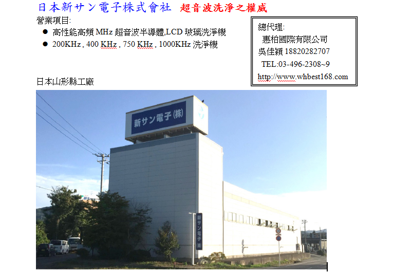 Huibai International Co., Ltd.は、Shinsan Electronics Co., Ltd.のメガソニック超音波洗浄機の中国における正規販売代理店です。