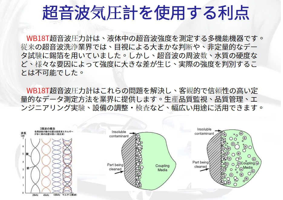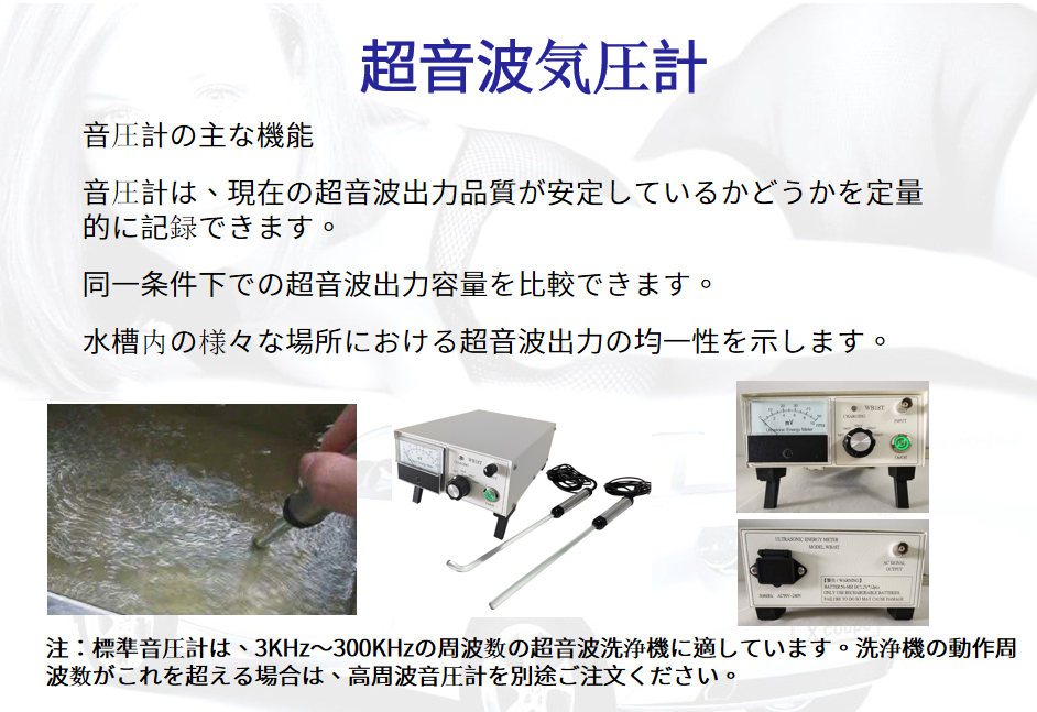 この機器はハイエンドの精密機器を使用して製造されており、テスト、音響研究、産業品質管理をサポートする超音波洗浄装置に最適な測定ツールです。
